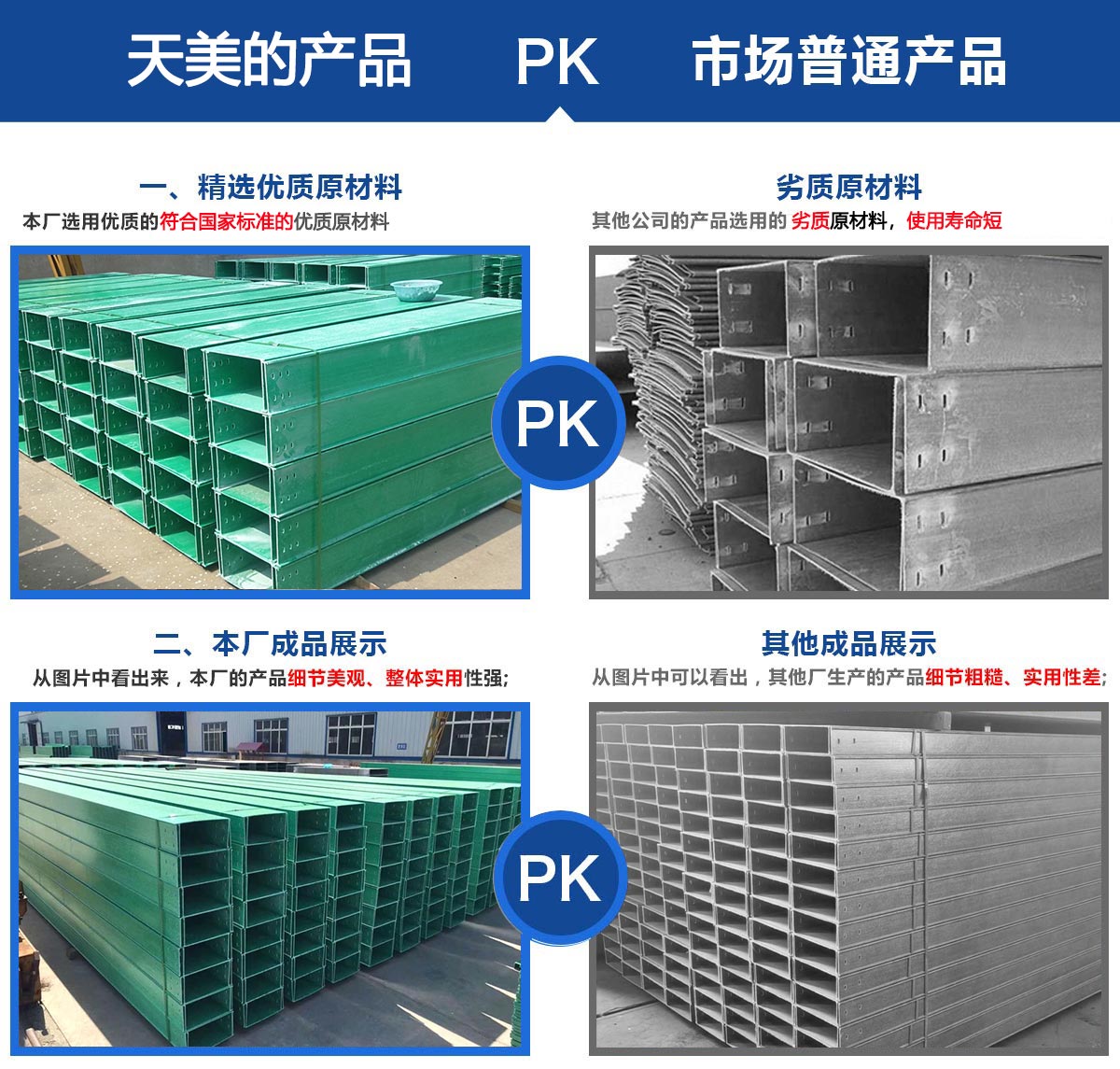 本公司主要產(chǎn)品有玻璃鋼電纜橋架、酚醛樹脂橋架、玻璃鋼除霧器、輪廓樁、防腐檁條、污水池蓋板、模壓化糞池、方形冷卻塔、圓形冷卻塔、RTM真空導(dǎo)入產(chǎn)品、熄焦塔除塵裝置等,公司設(shè)備較優(yōu)良,技術(shù)力量強(qiáng),工人操作水平高,能夠獨立的進(jìn)行玻璃鋼產(chǎn)品的制造和設(shè)計、適用于各大工程的建設(shè)。